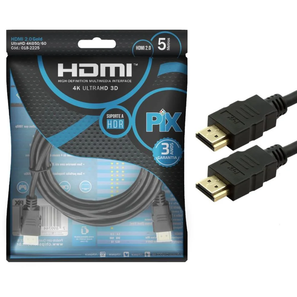 Cabo HDMI Chip Pix 19 Pinos 5 m 3D 4K (018-2225)