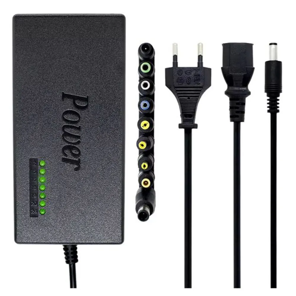 Adaptador universal para notebook. Equipado com diferentes conectores para garantir compatibilidade com a maioria dos modelos de notebook. O produto acompanha 9 plugs de entrada, ideal para quem trabalha com mais de um modelo de notebook. Possui fonte estabilizadora, com emissão de carga constante e controle do fluxo de energia, evitando curto circuitos e danos ao seu notebook em casos de queda de energia.