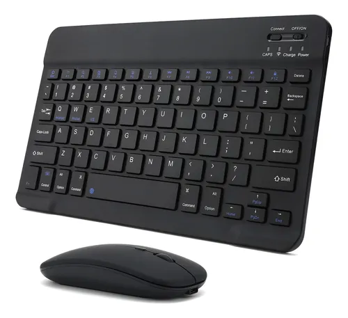 Kit teclado e mouse bluetooth fácil de instalar e prático de usar, para tablets e notebooks.